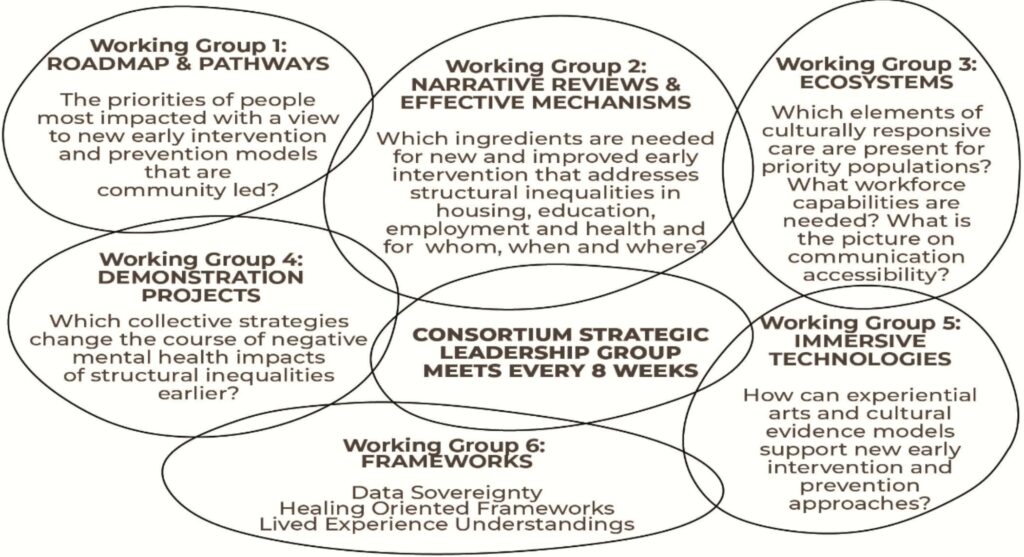 The Consortium is a direct outcome from the Centre’s Call to Action (2024) Casting the Net for What Matters and for Whom to [re]form national mental health and wellbeing using Five Foundations and guided by nine actions for change. The Consortium will expand the ALIVE National Centre’s flagship projects that are shifting the narratives in what community-level prevention is, creating new models to address missed life years with priority populations and to deliver a holistically focused at-scale system of care. This Mental Health Research Grant 2024 Million Minds Mission Round $10M (AU) funding provides investment to continue to lead the sector in embedded lived-experience co-research models and ways to work in partnership with priority populations.