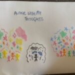 Image 1: representation of my younger self in residential care facilities with reinforced brick walls, ‘counting walls’. sitting alone, counting the individual bricks on the wall, a coping mechanism Image 2: depiction of loneliness, isolation. one stuck with their own negative thoughts, accumulating. colourful displays collaboration, connection, positive emotions, how varying ideas, thoughts, opinions and aspirations can intertwine and flourish from each other.