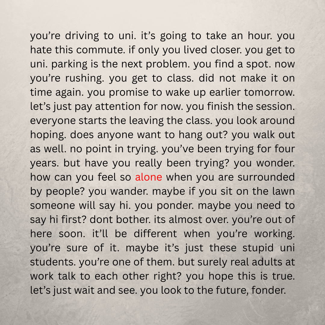 If you are 18-25 and navigating loneliness while starting Uni, TAFE, or training, we want to hear your story.
